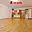 Obývací část je nezařízená. V obývací části je dřevěná podlaha. V oknech jsou látkové rolety "den a noc".