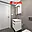 Koupelna je vybavena sprchovým koutem, umyvadlem, žebříkovým topením a toaletou.